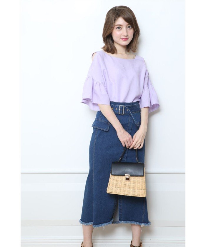 フリンジヘムのこなれ感あるデザインで仕上げた、大人カジュアルなデニムスカートが登場です。