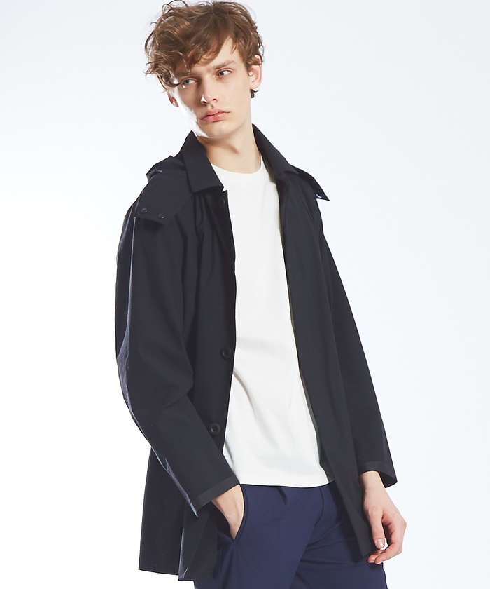 マットな光沢感のある4wayストレッチ素材を使用。ハリ感もなく、快適な着心地です。縫代を熱圧着加工で処理しており、極力表にステッチを出さずにすることで、クリーンな印象に。