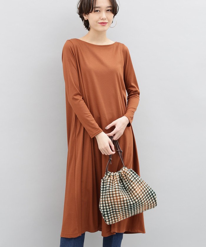 <ペチスカート付き>楽な着心地でステキを叶えるジャージーワンピースたっぷりと入ったフレアが動くたび揺れる、女性らしいシルエットのワンピースです。ペチスカート付きなのでタイツを履く季節もまとわり付かず安心。ピリングしにくくシワになりにくい上、吸湿速乾にも優れているウール混のスムースを使用しています。自宅で洗えるイージーケア素材なのも嬉しいポイント。