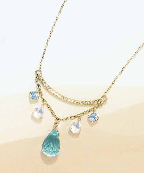 全体的に涼しげな色合いに、華やかさも兼ねそろえた暑い時期にぴったりのネックレスです。
