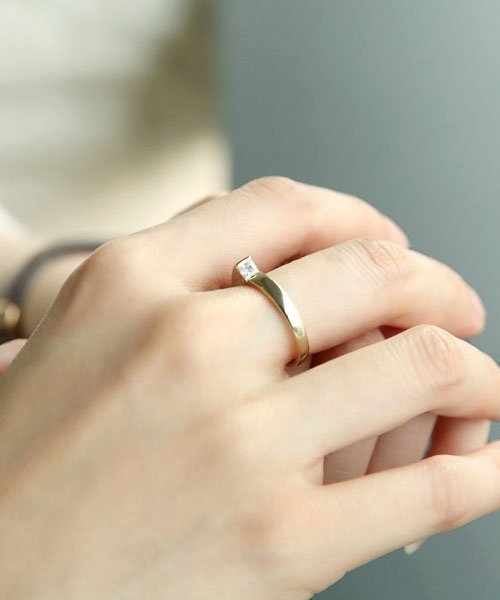 ユニークなフォルムが印象的なリング。サイドにあしらったストーンがさりげない輝きで手元を明るく華やかに彩ります。シンプルながら個性あふれるスタイリッシュなデザインが大人コーデのアクセントに◎コーデレスで使えるアイテムです。