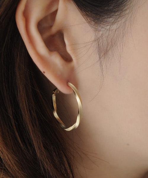 程よいサイズ感のフープピアスに、マット加工とねじれを加えて落ち着いた大人のイメージに仕上げました。