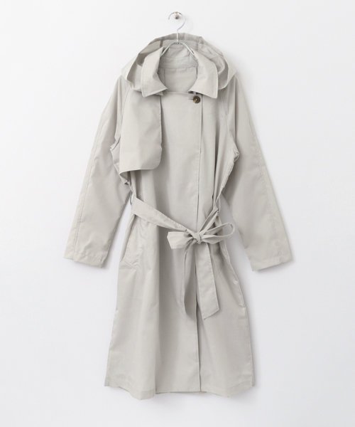 ガウンのようにさらっと着られるレインコート。コンパクトに畳める仕様なので、いつものバッグに忍ばせておくと、急な雨にも大活躍。取り外しのできるフードなので、雨が止んだらトレンチ風に着用しても◎