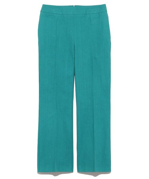 レトロ調のスタイルとも相性が良い裾フレアカラーパンツ。センタープレスでピシッと折り目を付けており、上品に穿きこなせます。足元がチラリと覗く絶妙な丈感で、ロングシーズン活躍する1本。