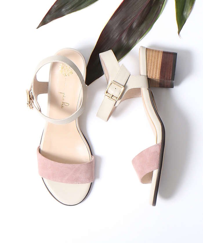 安定感のある太ヒールをコンビ配色でサイドからやバックからも印象的に。