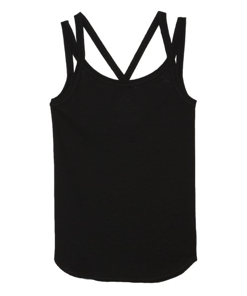 体のラインを綺麗に見せてくれるテレコタンクトップ。薄手のニットだから、レイヤードもすっきりと決まります。クロスデザインのバックスタイルで女らしく。背中の開いたウエア合わせも、魅力たっぷりに演出。