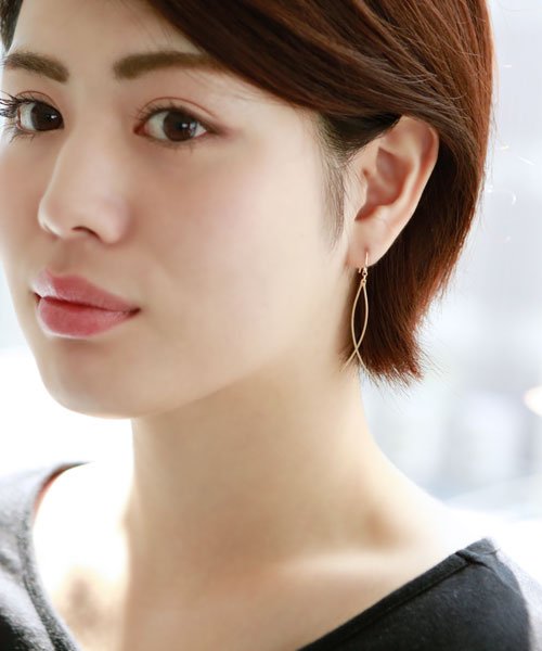 カーブのモチーフが揺れる、大人可愛いピアス。
