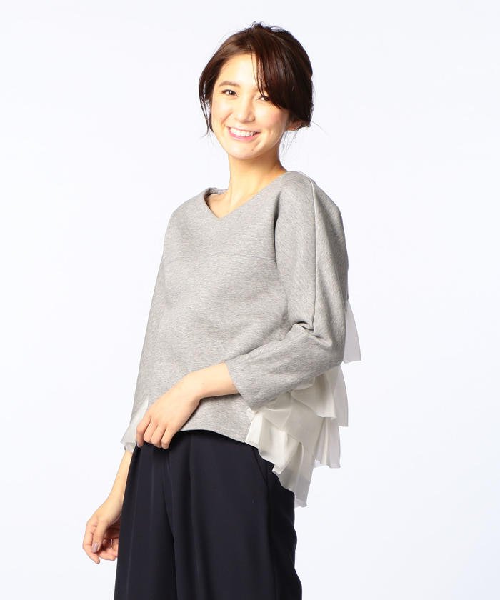 【iriiri/イリイリ】バックフリルプルオーバーカットソー