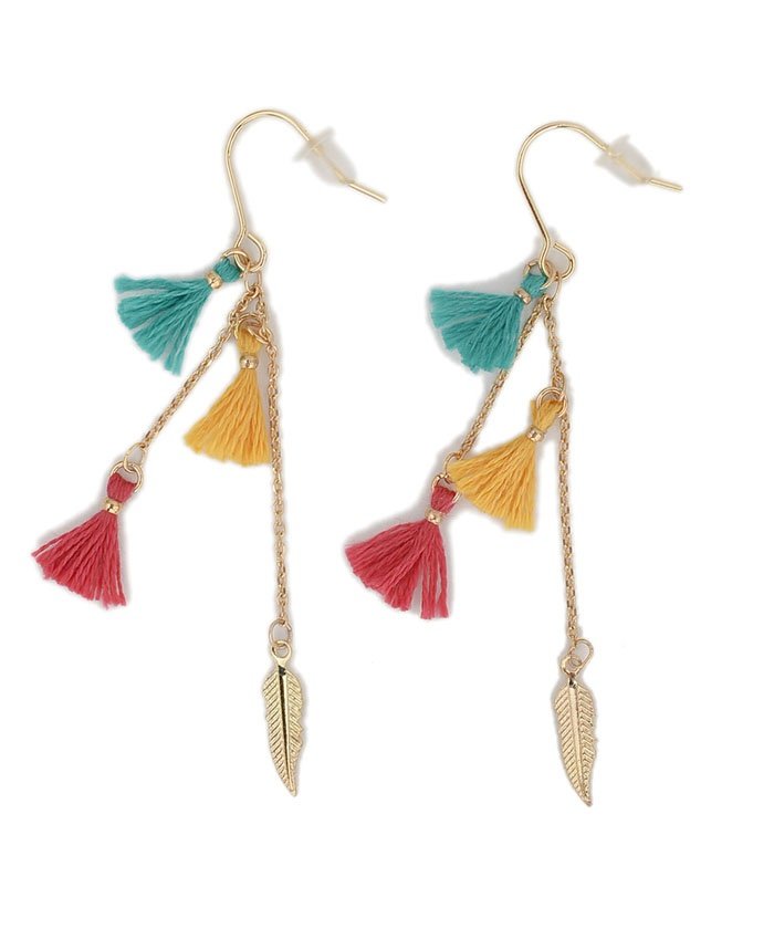 ランダムに配置された小さなタッセルがアクセントになったピアス。