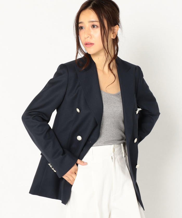 トラッドなダブルのジャケット。カジュアルに着るのもおすすめです。