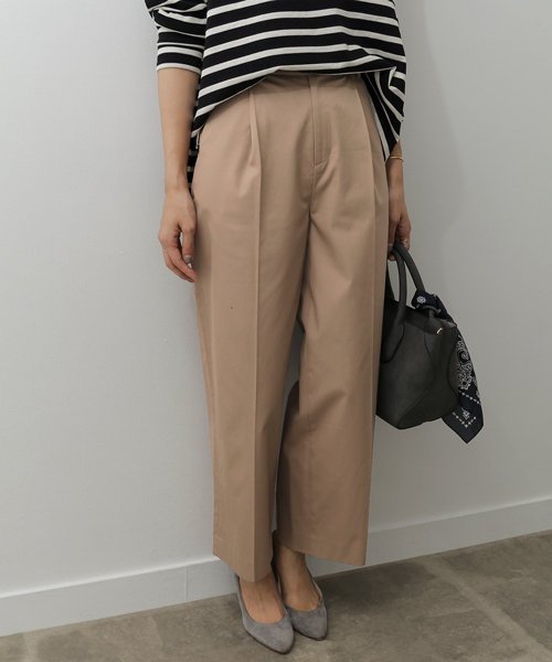 ワイドシルエットながらもセンタープレスやウエストタックがスッキリとまとまるトラウザーは、オンオフ問わず活躍するマルチなボトムス。