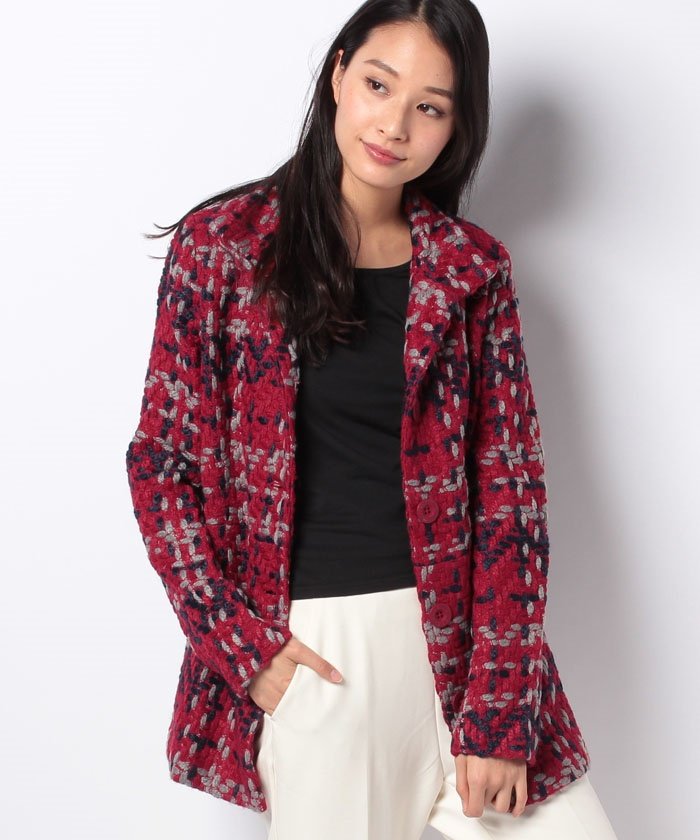 素材感をいかしたチェック柄コート。今季トレンドのトラッドスタイルにもジャストマッチ。裏地にはブランドらしいサークルモチーフを取り入れました。