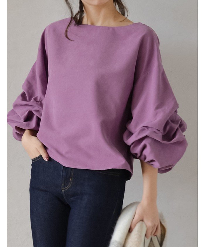 ピーチスキン袖ボリュームトップス