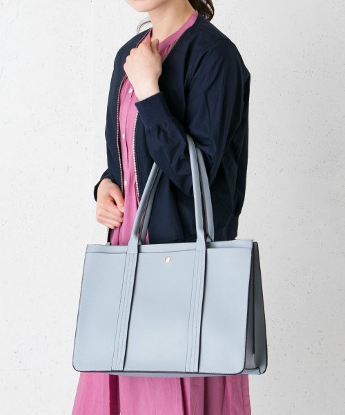 肩掛けしやすい大きめのハンドルと、センターのポケットが特徴のトートバッグ。A4サイズもすっぽり入るだけでなく、中にはペン差しやICカードを入れるポケットなど充実。オフィスにもピッタリなバッグです。シンプルながらカッチリした印象もあるのでジャケット合わせも相性抜群ですよ。