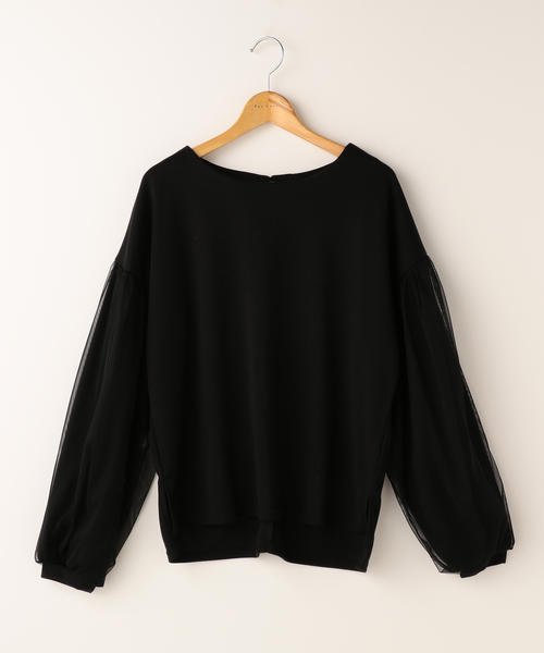 袖チュール重ねポンチプルオーバー