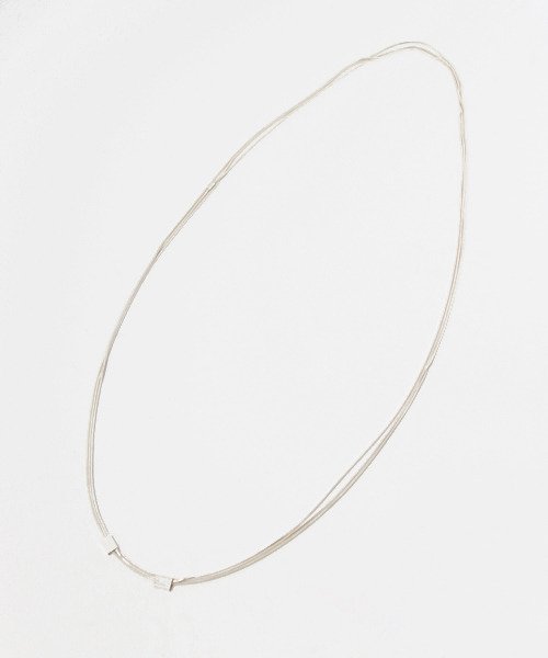 複雑な表情を見せるが、複数のシンプルなチェーンのみでできたミニマルな構造。身につけ方次第で
