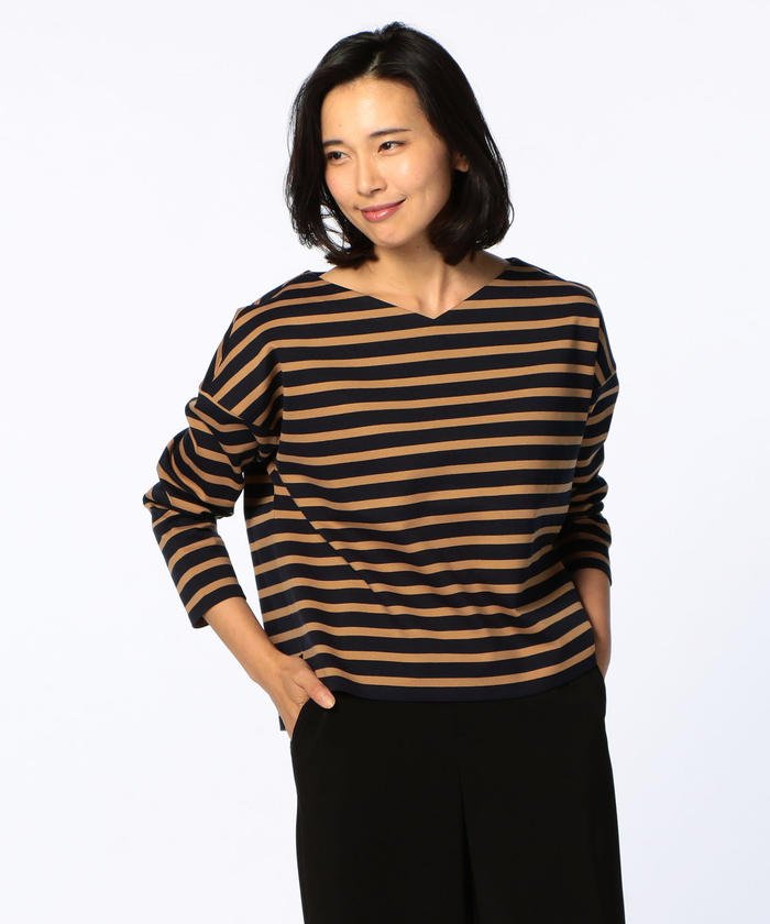 汎用性の高いボーダー柄のプルオーバーカットソー。ジャージー素材の一種のポンチ生地を使用しているので、着心地抜群。トレンドのドロップショルダーや抜け感あるゆったり目のシルエットなど、旬のディティール満載。気軽に合わせられ、お洒落な着こなしにまとめてくれる一枚です。
