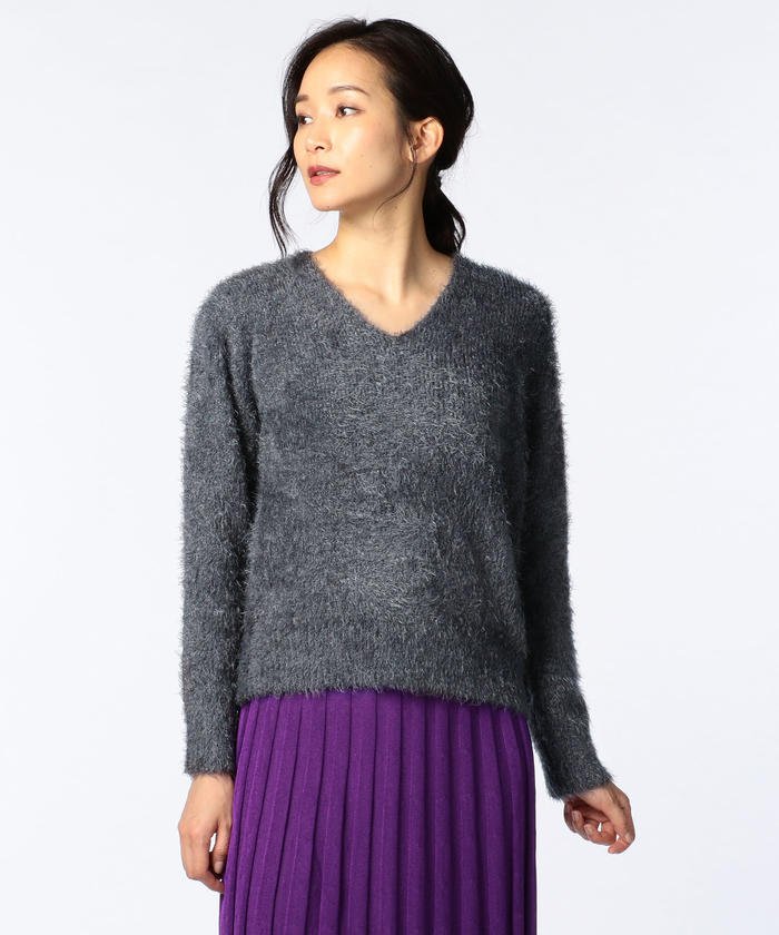 フェザー糸Vネックプルオーバーニット