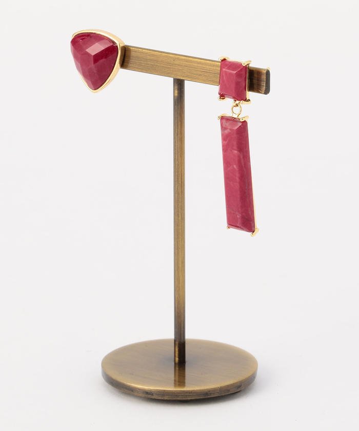 アップスタイルのヘアアレンジからダウンスタイルまで、ほど良くエッジの効いたアシンメトリーなバランスが着こなしに印象的なアクセントをもたらすピアスです。シンプルでカジュアルなTシャツコーディネートにはもちろん、ドレッシーな装いにもおすすめの一品です。