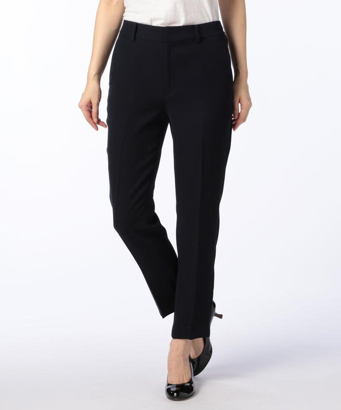 上質感が漂うバックサテン生地のクロップドパンツは、シンプルなデザインときれいなシルエットが魅力。細部は玉縁式のヒップポケット、すっきりとした丈感やテーパードシルエットなどが特徴です。通勤からフォーマルなシーンまで対応し、幅広く活躍するアイテム。同シリーズのジャケットを揃えるとセットアップスーツとして着用可能です。