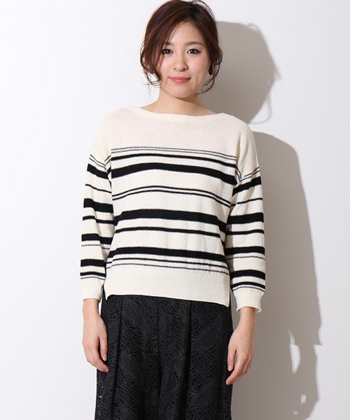 鹿の子編みボーダープルオーバー。