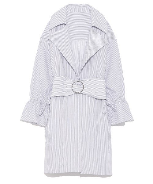 季節をつなぐライトアウターとしてもぴったりな薄手のシャツコート。シャーリングを利かせるドロストコードデザインのスリーブで、メリハリのあるスタイルを演出します。ワイドベルトがトレンド感たっぷりの着こなしに導くポイント。