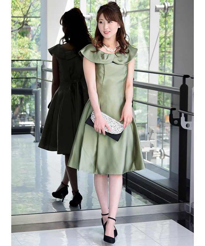 女性らしいシルエット美を追求したフィット&フレアワンピース。バックネックのリボンで後ろ姿に自信が持てるアイテムに。つやめく光沢素材も高ポイント。シルエットをキープするペチコート付きです。